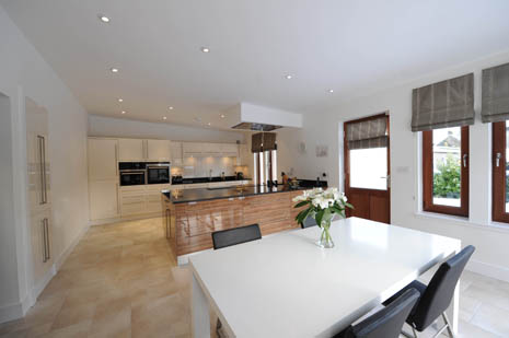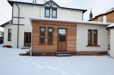 | This project involves the demolition of an existing rear conservatory and utility room which were underused due to poor thermal performance and restricted access. They are replaced with a new kitchen / dining / living space with bi fold doors opening into the rear garden area. The existing kitchen has been converted into a separate utility room and shower room. The materials for the extension have been chosen to match and compliment the existing render and sandstone house. A shallow pitch roof allows the existing feature windows to remain in place. |