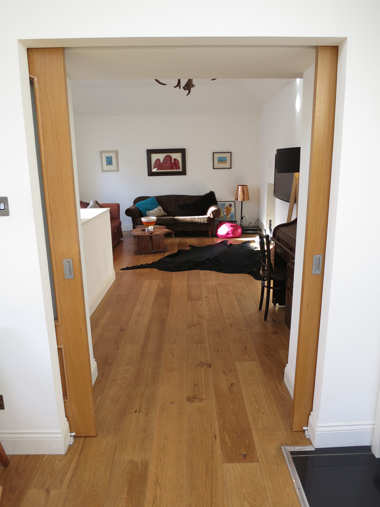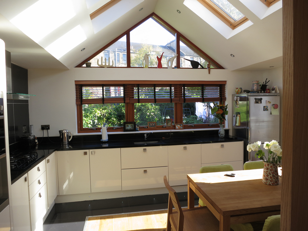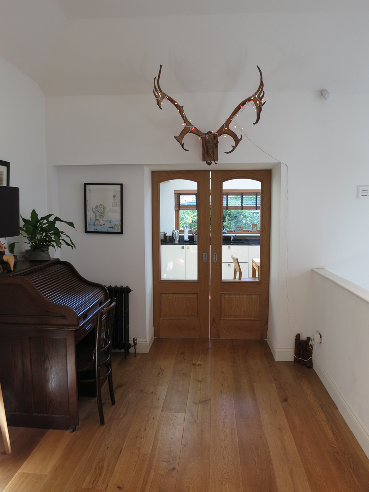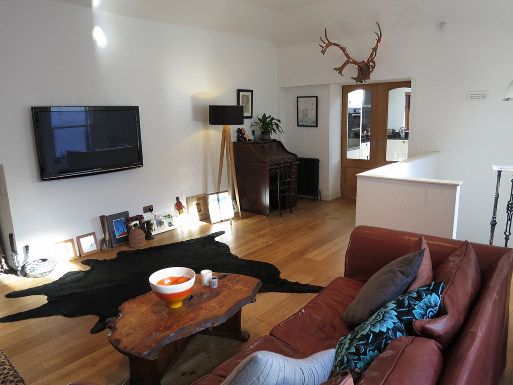 A new 2 storey extension was added and the accommodation reversed creating a bright living / dining / kitchen on the upper level overlooking the garden. The ground floor has been converted to form an en suite master bedroom with 2 single bedrooms located adjacent to the main bathroom.